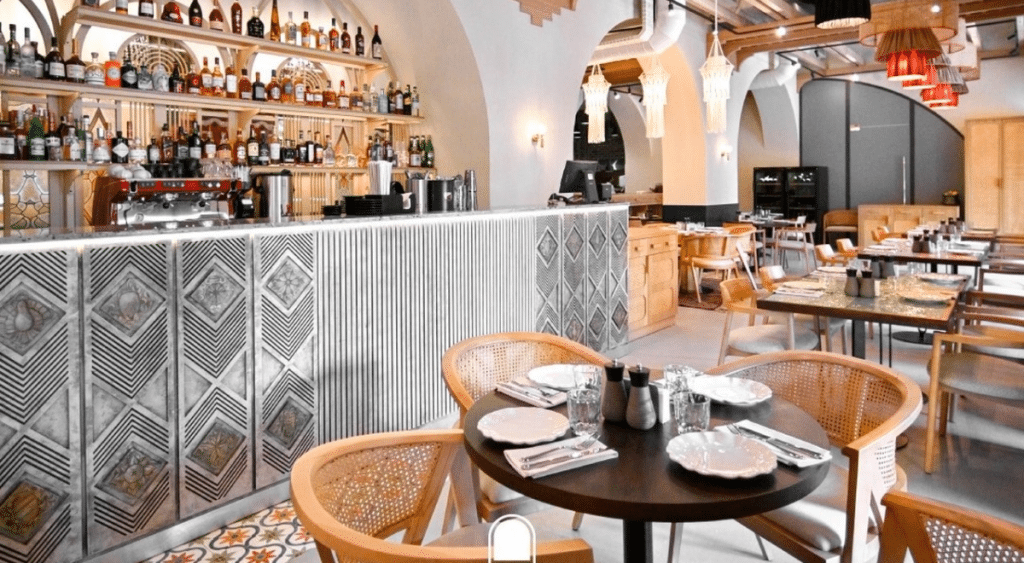 The menu offers breakfast, lunch and dinner – making it a perfect choice at any time of day. The atmosphere is modern, and sometimes there is even live music playing to create an even more unforgettable experience.