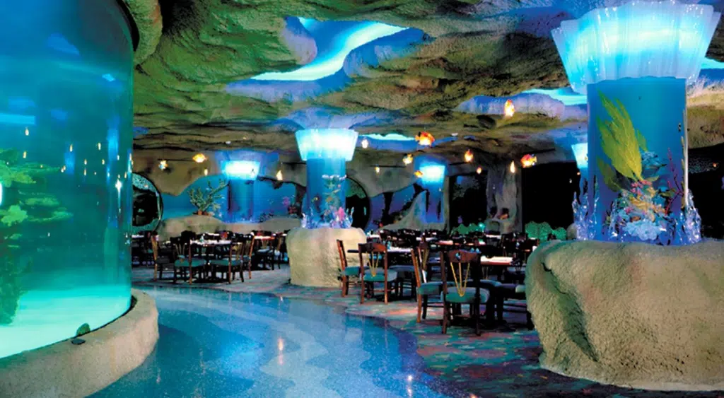 During your meal, you can watch various, up to 1,000 sea creatures in the huge aquarium around you.